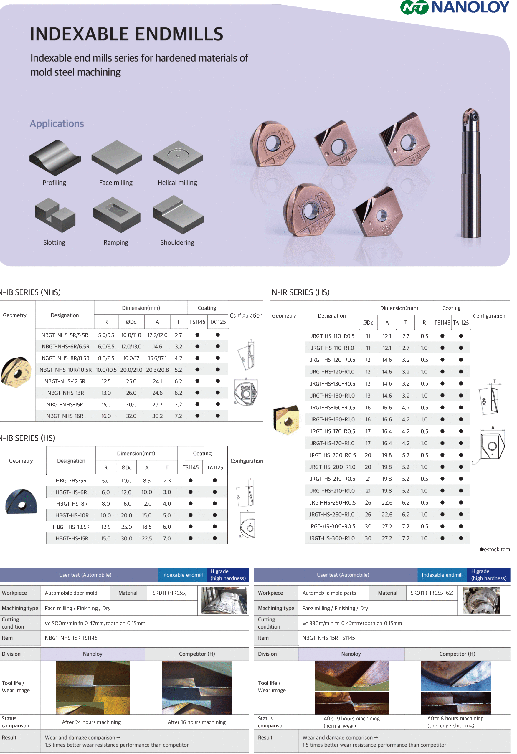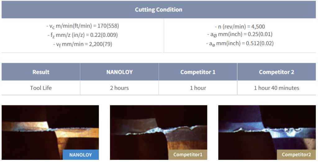 - Excellent tool life with excellent NANO ultra grade and coating